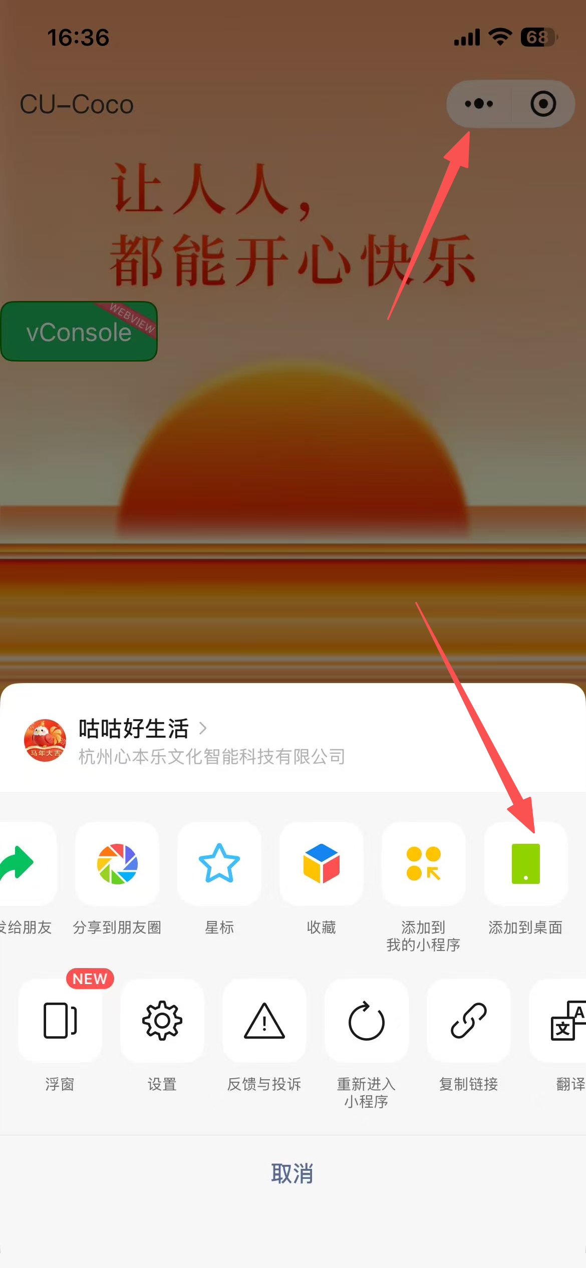 点击首页右上角 ,添加到桌面。