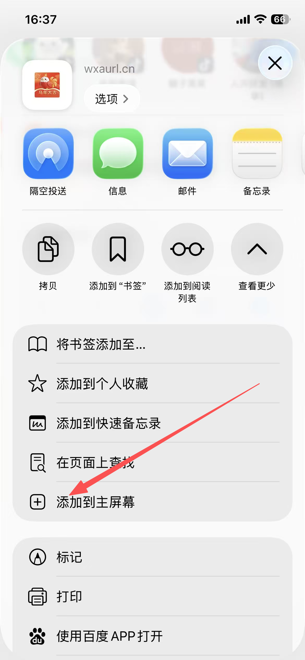 4️⃣ 在弹出的菜单中选择 「添加到桌面」